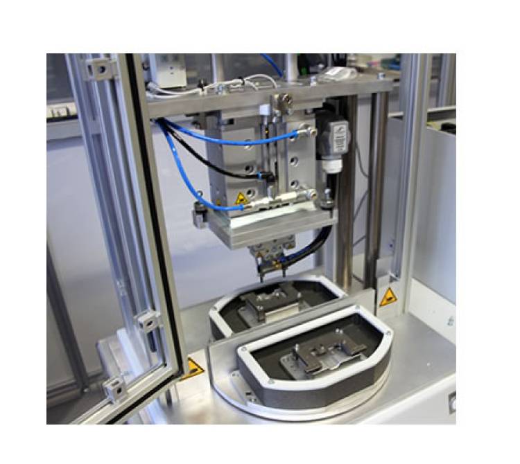 - Drehteller: Die Anlage ist mit einem Drehteller ausgestattet, der die vorbereiteten Komponenten zur Verstemmung in die Arbeitsposition bringt.